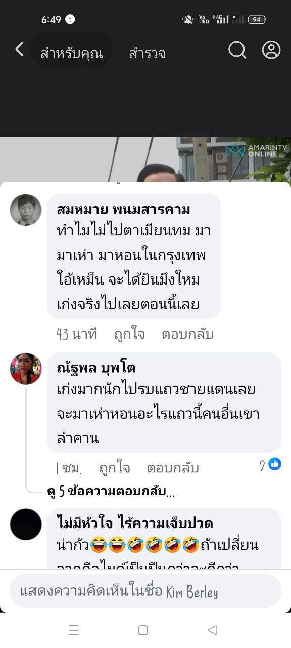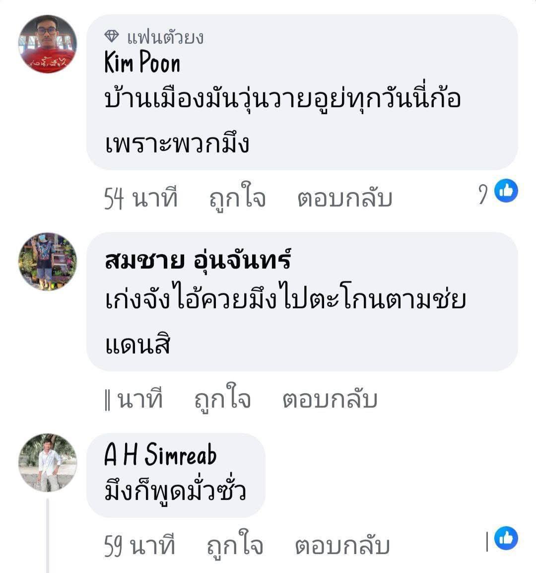 – បញ្ហាកើតឡើងពីថ្នាក់ដឹកនាំនិងថ្នាក់ដឹកនាំ ហេតុអ្វីបានជាជេរប្រមាថប្រជាជនខ្មែរបែបនេះ និយាយបែបនេះមិនមែនជាប្រជាជនថៃ ប្រជាជនថៃមិនដែលមើលងាយជនជាតិសាសន៍ប្រជាជនដូចគ្នា។