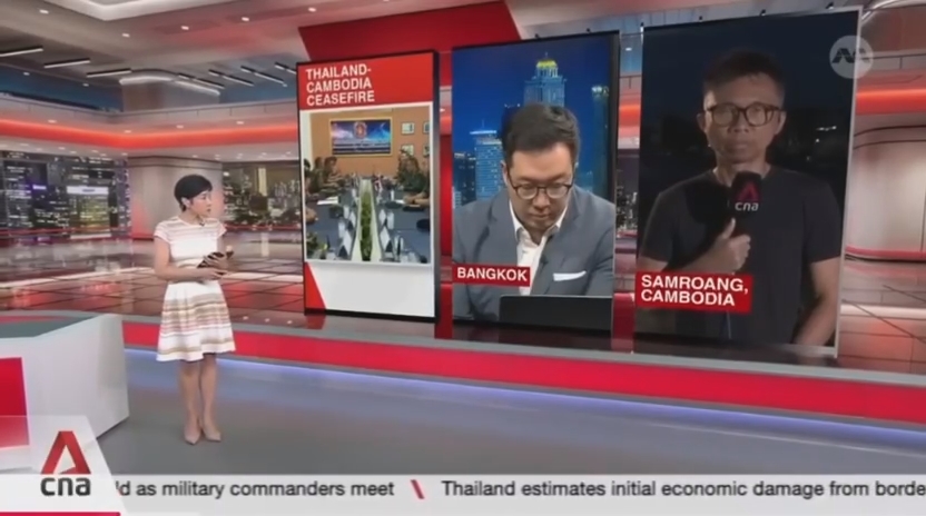 ក្នុងសេចក្ដីថ្លែងការណ៍បើកចំហរដែលបានផ្សាយបន្តផ្ទាល់ អ្នកយកព័ត៌មានរបស់ CNA បានបញ្ជាក់ថា៖ «ខ្ញុំកំពុងស្ថិតនៅទីនេះផ្ទាល់ (កម្ពុជា) ហើយបានចំណាយពេលសន្ទនាជាមួយពលរដ្ឋក្នុងតំបន់ ដែលរស់នៅប្រហែល ២០ គីឡូម៉ែត្រពីខ្សែបន្ទាត់ព្រំដែន។ គ្មានសម្លេងបាញ់ប្រហារឡើយ ក្រោយពេលបទឈប់បាញ់មានប្រសិទ្ធភាព ហើយរហូតមកដល់ពេលនេះស្ថានការណ៍នៅស្ងប់ស្ងាត់»។