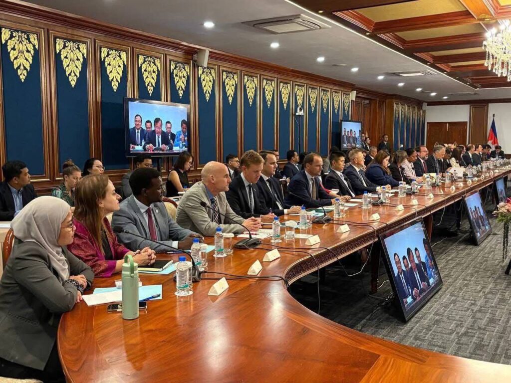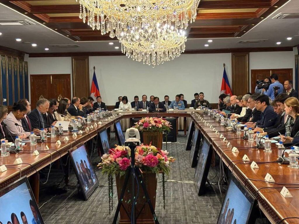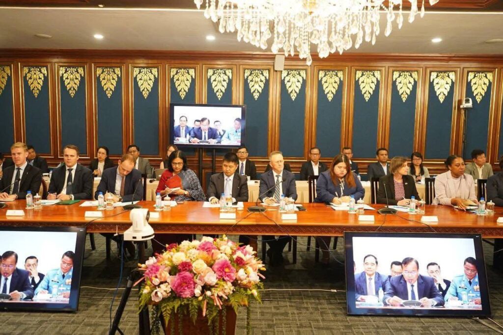 ភ្នំពេញ៖ នៅរសៀលថ្ងៃទី២១ ខែសីហា ឆ្នាំ២០២៥ នៅទីស្តីការក្រសួងការបរទេសនិងសហប្រតិបត្តិការអន្តរជាតិ លោក ហេង រតនា អគ្គនាយកមជ្ឈមណ្ឌលកំចាត់មីនកម្ពុជា ខណៈអញ្ជើញ ចូលរួមក្នុងកិច្ចប្រជុំ​ដើម្បីជម្រាបជូនពីការវិវត្តថ្មីៗនៃបញ្ហាជម្លោះព្រំដែនកម្ពុជា-ថៃ ដល់សមាជិកអង្គទូតបរទេសចំនួន៤២ប្រទេសនិងទីភ្នាក់ងារអង្គការសហប្រជាជាតិចំនួន២២ ប្រចាំនៅព្រះរាជាណាចក្រកម្ពុជា ដឹកនាំដោយឯកឧត្តមឧបនាយករដ្ឋមន្រ្តីប្រាក់ សុខុន រដ្ឋមន្ត្រីក្រសួងការបរទេស និងសហប្រតិបត្តិការអន្តរជាតិ បាន បង្ហាញអំពីសុច្ឆន្ទៈ រាជរដ្ឋាភិបាល ក្នុងកិច្ចសហប្រតិបត្តិបោសសម្អាតមីន តាមបណ្តោយព្រំដែនកម្ពុជា-ថៃ។