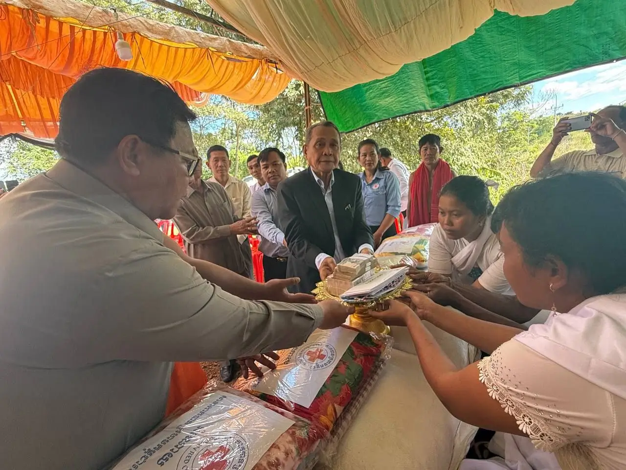 ក្រៅពីថវិកានេះ ក្រុមការងារក៏បានផ្តល់សម្ភារៈជំនួយដូចជា អង្ករ ២៥០គីឡូក្រាម និងឃីតចំនួន ៥កញ្ចប់ ដើម្បីជាសម្រួលដល់ជីវភាពប្រចាំថ្ងៃរបស់ក្រុមគ្រួសាររងគ្រោះ នៅគេហដ្ឋានសព ស្ថិតនៅភូមិជ្រៃមុំាង ឃុំ២ធ្នូ ស្រុកស្នួល ខេត្តក្រចេះ។ ដោយមានការចូលរួមយ៉ាងច្រើនពីភាគីអាជ្ញាធរមូលដ្ឋាន និងសាខាកាកបាទក្រហម ដែលបានបង្ហាញពីស្មារតីអាណិតអាសូរចំពោះជនរងគ្រោះ និងជាការផ្តល់កម្លាំងចិត្តដល់ក្រុមគ្រួសារជនរងគ្រោះ។