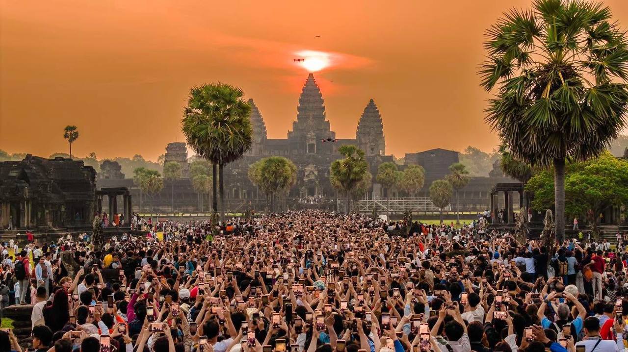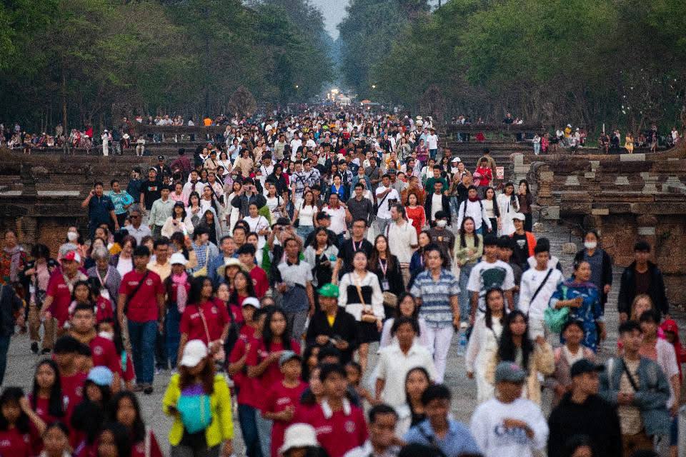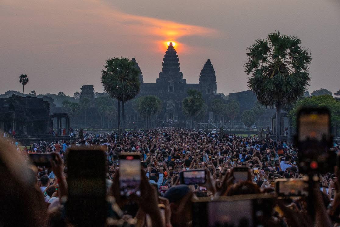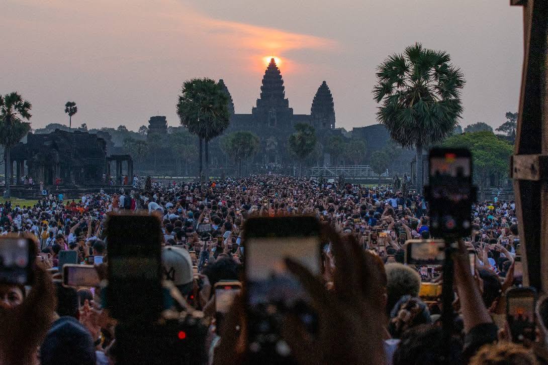 សៀមរាប៖ ទេសចរជិត៦ម៉ឺននាក់ ទៅទស្សនាព្រឹត្តិការណ៍ថ្ងៃរះចំកំពូលកណ្ដាល ប្រាសាទអង្គរវត្ត គឺនៅថ្ងៃទី២១ និង២២ ខែមីនា ឆ្នាំ២០២៥នេះ។ បើយោងតាមទិន្នន័យពីរដ្ឋបាលខេត្តសៀមរាប ក្នុងចំណោមទេសចរសរុប ក្នុងនោះមានទេសចរជាតិចំនួនប្រមាណ ៥ពាន់នាក់។