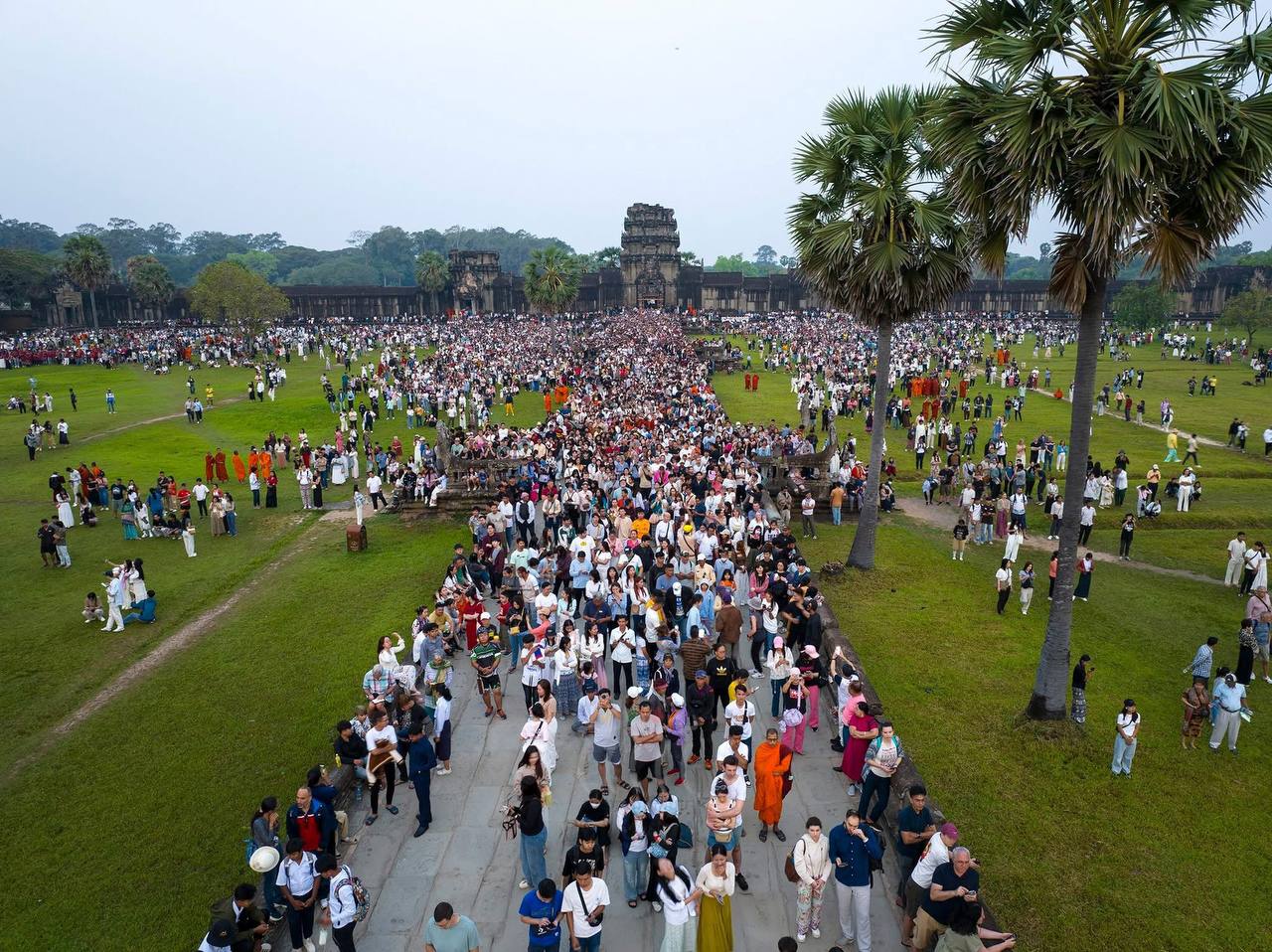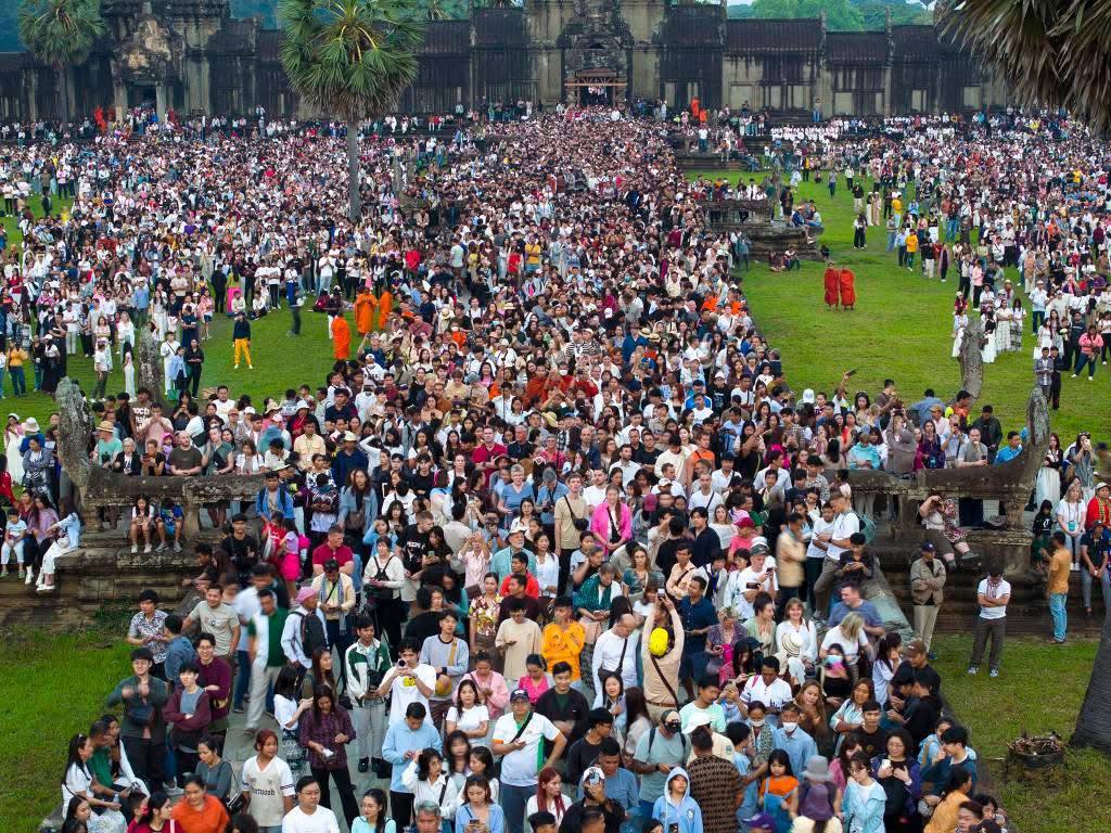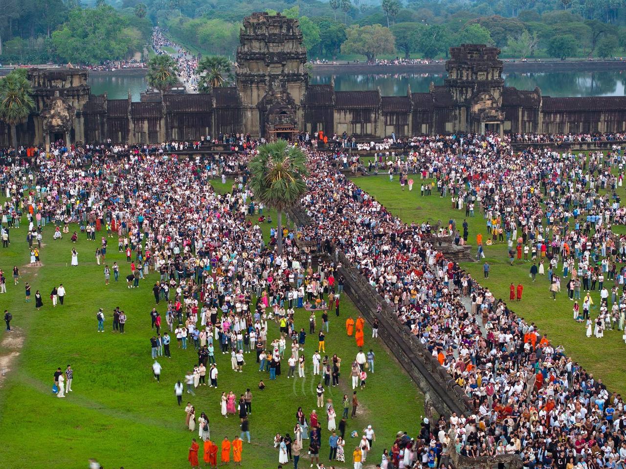 សៀមរាប៖ ទេសចរជិត៦ម៉ឺននាក់ ទៅទស្សនាព្រឹត្តិការណ៍ថ្ងៃរះចំកំពូលកណ្ដាល ប្រាសាទអង្គរវត្ត គឺនៅថ្ងៃទី២១ និង២២ ខែមីនា ឆ្នាំ២០២៥នេះ។ បើយោងតាមទិន្នន័យពីរដ្ឋបាលខេត្តសៀមរាប ក្នុងចំណោមទេសចរសរុប ក្នុងនោះមានទេសចរជាតិចំនួនប្រមាណ ៥ពាន់នាក់។