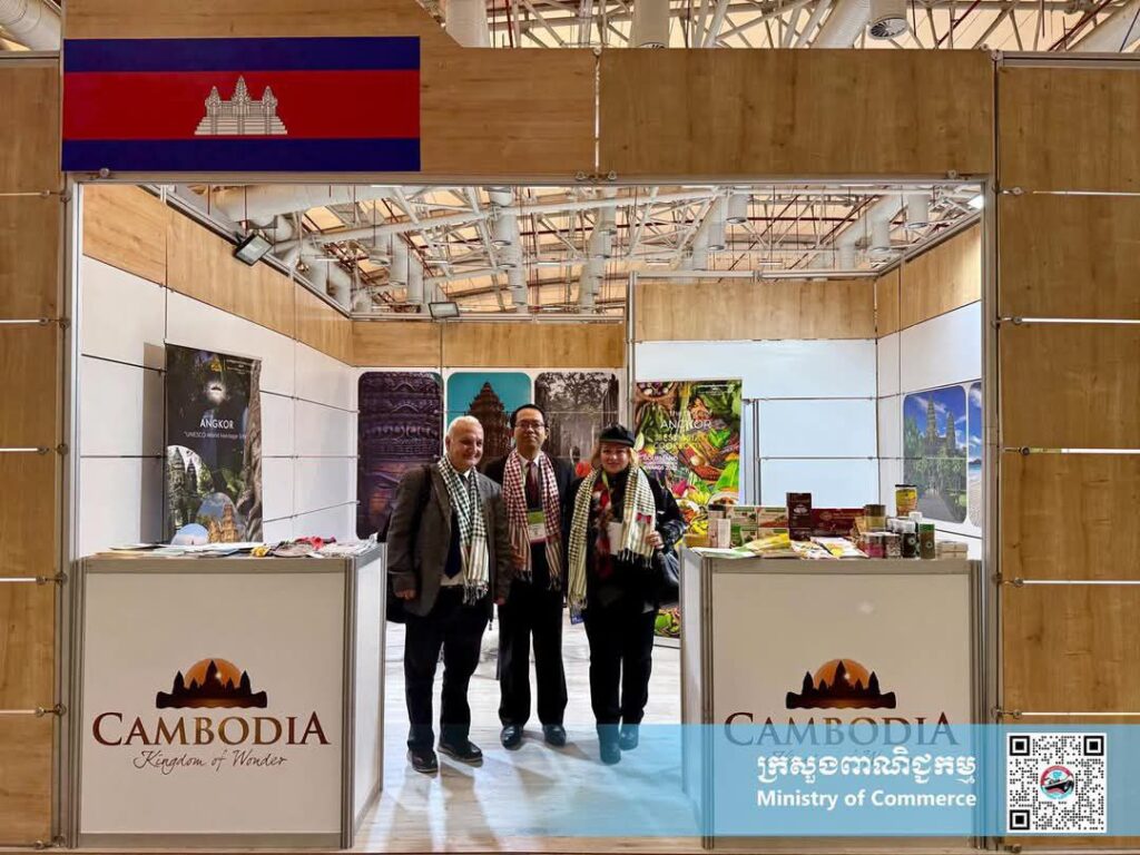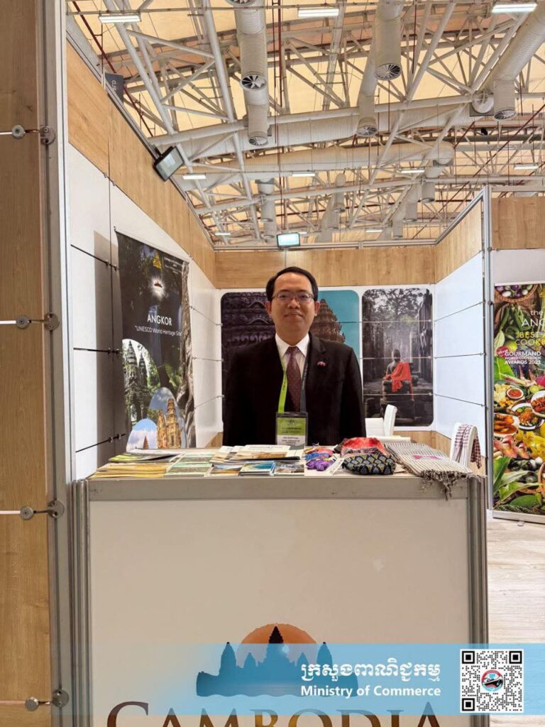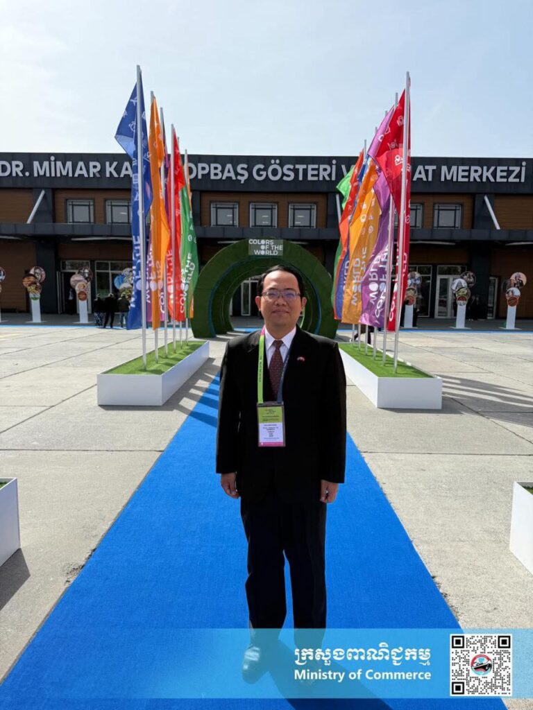 ភ្នំពេញ៖លោក កែវ ប៊ុនថេង អនុព័ន្ធពាណិជ្ជកម្មអមស្ថានទូតកម្ពុជាប្រចាំសាធារណរដ្ឋតួកគីយ៉េ បានចូលរួមនិងរៀបចំស្តង់ពិព័រណ៍តាំងបង្ហាញផលិតផលខ្មែរ រួមមាន៖ អង្ករ ម្រេច គ្រាប់ស្វាយចន្ទី វត្ថុអនុស្សាវរីយ៍ និងគ្រឿងឧបភោគបរិភោគមួយចំនួន ព្រមទាំងខិតប័ណ្ណព័ត៌មានអំពីតំបន់ទេសចរណ៍ក្នុងប្រទេសកម្ពុជា នៅក្នុងកម្មវិធីពិព័រណ៍ទេសចរណ៍ Colors of the World ដែលត្រូវបានរៀបចំធ្វើឡើងចាប់ពីថ្ងៃទី១៨-២០ ខែមេសា ឆ្នាំ២០២៥ នៅមជ្ឈមណ្ឌលពិព័រណ៍និងសីល្បៈ Dr. Mimar Kadir Topbas នៅទីក្រុងអ៊ីស្តង់ប៊ុល សាធារណរដ្ឋតួកគីយ៉េ។