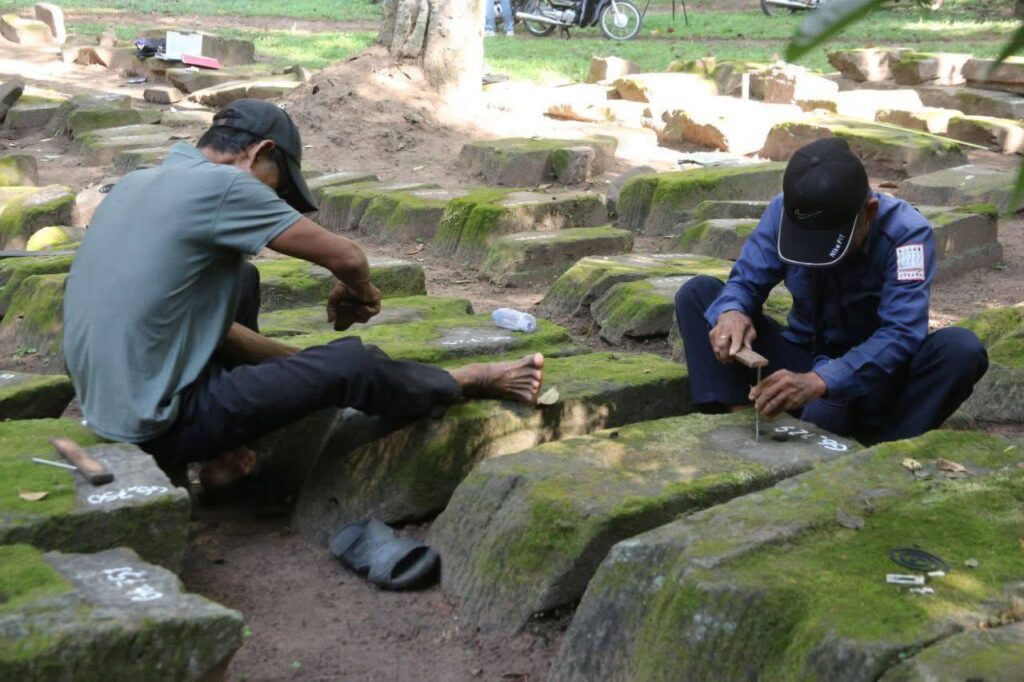លោក ធឿន សុខុន មន្រ្តីបច្ចេកទេសនៃនាយកដ្ឋាន បានឱ្យដឹងថា ក្រុមការងារបានអនុវត្តកិច្ចការនេះអស់រយៈពេលជិត ៥ខែមកហើយ ដោយបានកំណត់យកតួអក្សរផ្សេងៗសម្រាប់តាងដើម្បីសម្គាល់ថ្មនីមួយៗ។ ថ្មទាំងនេះមានខ្លះជាបំណែករូបព្រះពុទ្ធ ព្រះកេស ផ្តែរ និងចម្លាក់បុរាណផ្សេងៗទៀត។