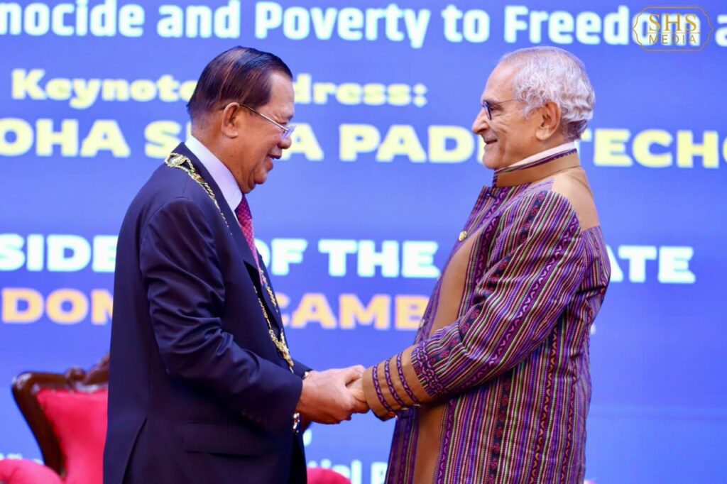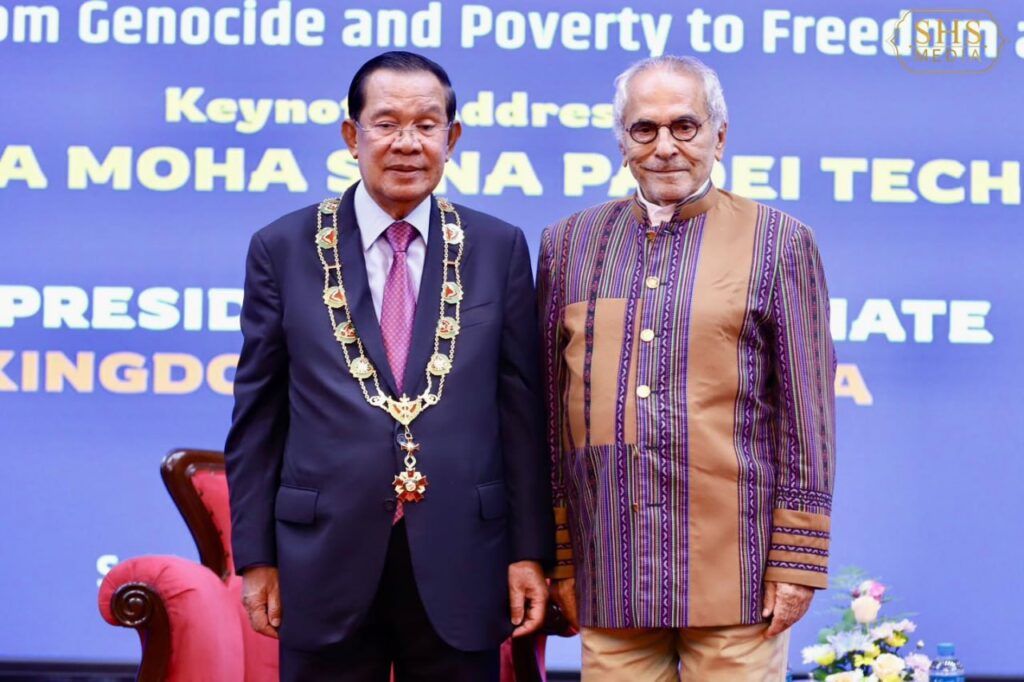 ភ្នំពេញ៖នៅព្រឹកថ្ងៃទី០៩ ខែឧសភា ឆ្នាំ២០២៥នេះ លោក José Ramos-Horta ប្រធានាធិបតី នៃសាធារណរដ្ឋប្រជាធិបតេយ្យទីម័រឡេស្តេ បានអញ្ជើញបំពាក់គ្រឿងឥស្សរិយយស Grand Collar of the Order of Timor-Leste ដែលជាឥស្សរិយយស កម្រិតខ្ពស់បំផុត និងក៏ជាការផ្តល់កិត្តិយសដ៏ធំធេងពីភាគីទីម័រឡេស្តេ ជូន សម្តេចអគ្គមហាសេនាបតីតេជោ ហ៊ុន សែន ប្រធានព្រឹទ្ធសភានៃព្រះរាជាណាចក្រកម្ពុជា ដែលធ្វើឡើងនៅវិមានប្រធានាធិបតី។