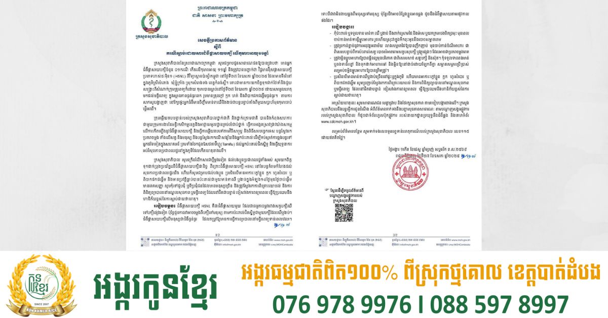 ខេត្តកំពង់ស្ពឺ ៖ ក្រសួងសុខាភិបាលនៃព្រះរាជាណាចក្រកម្ពុជា សូមជម្រាបជូនសាធារណជនឱ្យបានជ្រាបថា មានអ្នក ជំងឺផ្តាសាយបក្សីចំនួន ០១ករណី កើតលើកុមារាអាយុ ១១ឆ្នាំ និងត្រូវបានបញ្ជាក់ថា